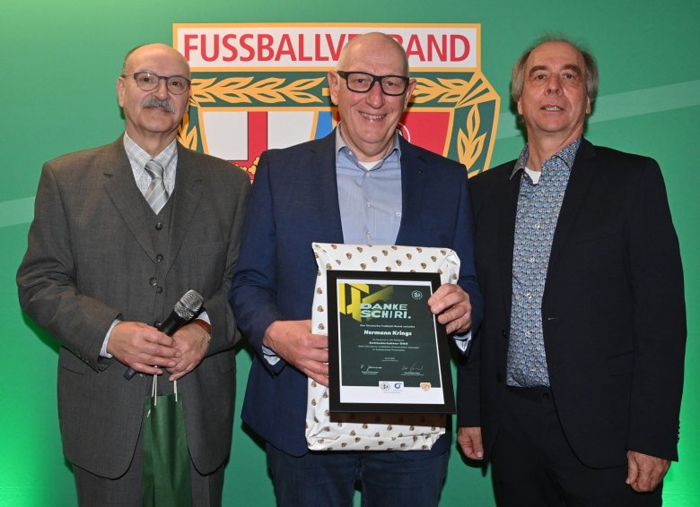Hermann Krings ist für mehr als 30 Jahre Schiedsrichter und sein jahrzehntelanges Engagement für den Fußballsport ausgezeichnet worden. Foto: Seydel/FVR